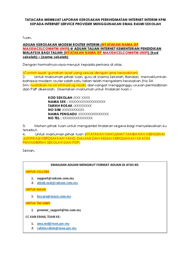 Panduan Membuat Aduan Laporan Kerosakan Perkhidmatan Internet Interim Pdf